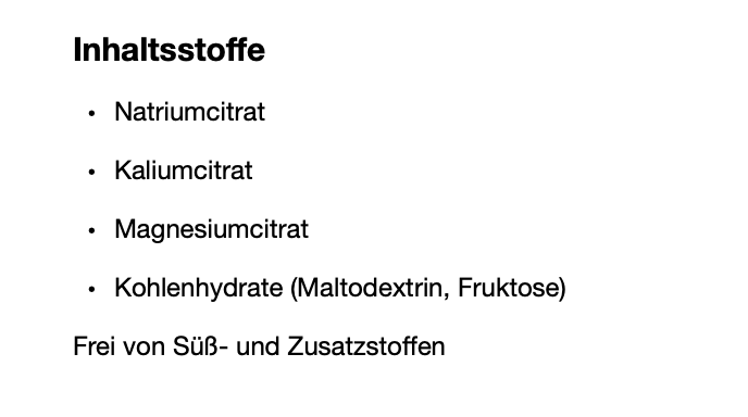 - Kohlenhydrate: Maltodextrin und Fruktose